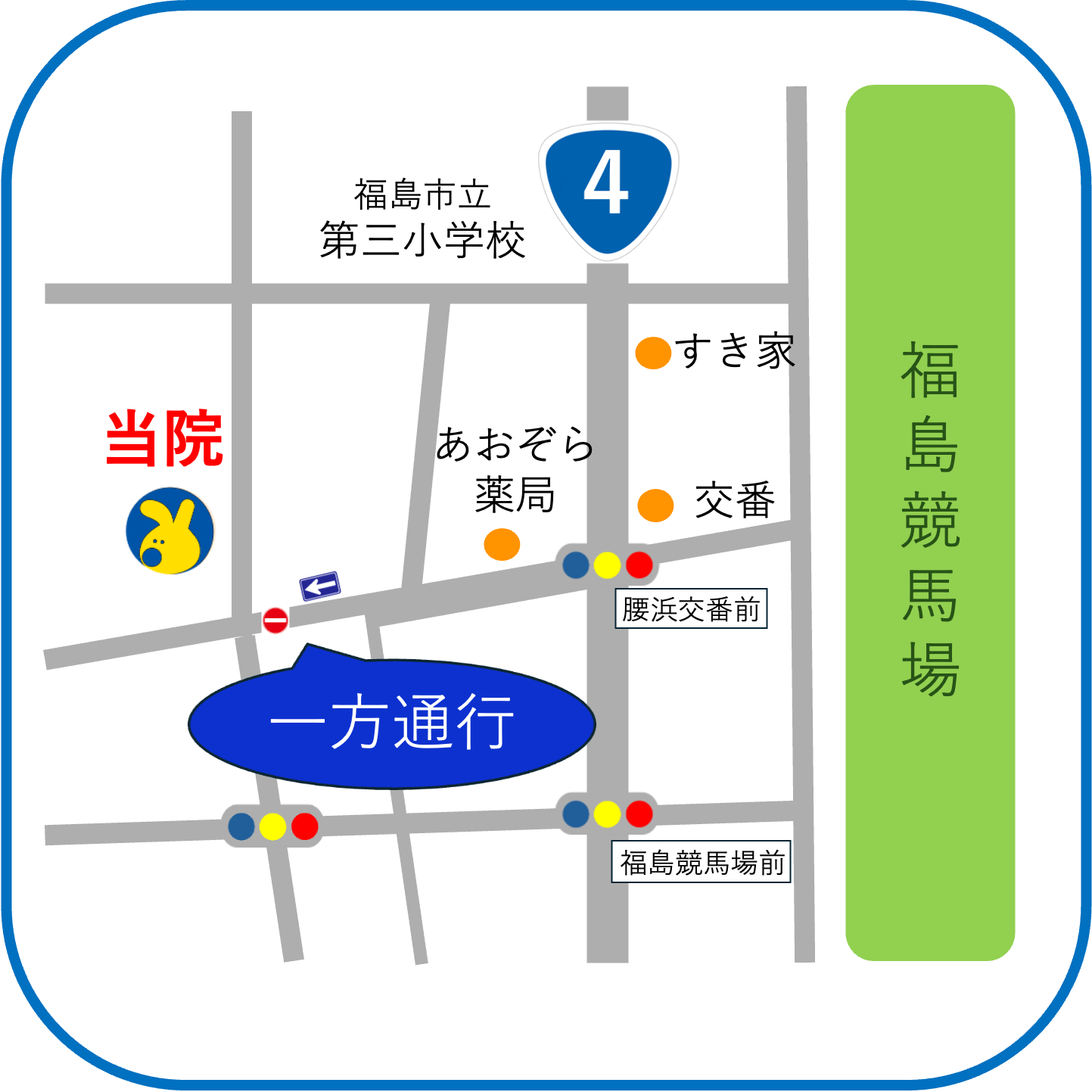 | アクセス | 乗用車:国道4号線「腰浜交番前」交差点を西進し、100m先の交差点を右折しすぐです。 |